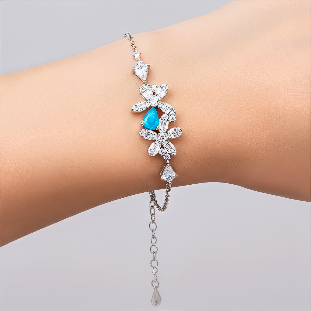 Циркони, немов зоряні іскри, підкреслюють сяйво опала і надають прикрасі урочистого блиску. Срібло з покриттям білим золотом підсилює енергетичний потік, створюючи ауру світла і захисту. Цей браслет стане амулетом душевної рівноваги, ніжності та надихаючої жіночності, допомагаючи зберігати внутрішню гармонію щодня.